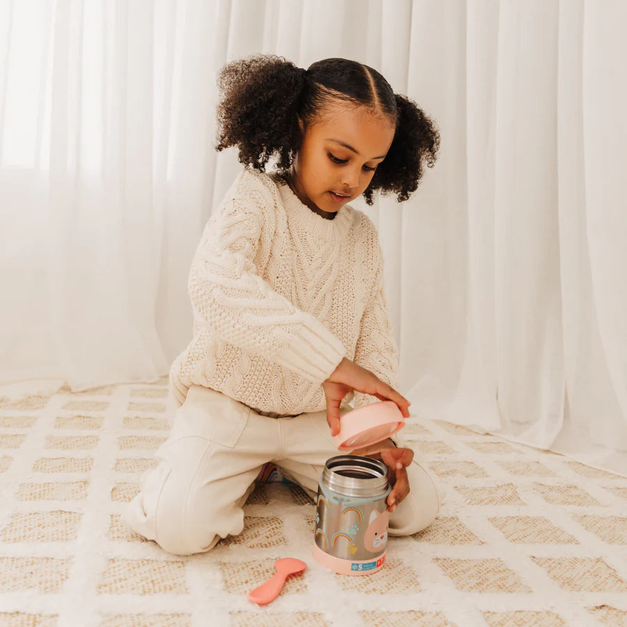 This colorful stainless steel container keeps kid-sized portions warm or cold. Store the spork, or most utensils, in the handy built-in holder so your little one is ready for meals on-the-go.