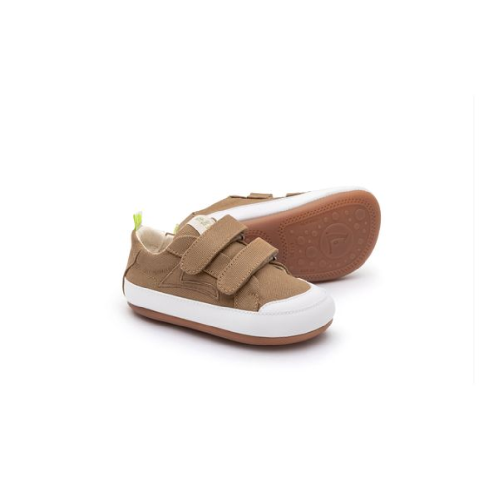 • Sizing of other brands are not a parameter for choosing your Tip Toey Joey. • Our unique FreeToGrow™ design is wider and foot-shaped, so the toes will be straight and activated to move and grow as free as if they were barefoot. For that reason, there is no need to buy bigger sizes. • Use our Size Guide to help you find the perfect size. • Our original Stretch&Stay™ elastic heel gently holds the shoe in place so first walkers are safe and free to move and explore their first steps. • This style has double velcro to make it easy on and off and provide a better fit. • Our in-built smart features promote the natural development of the foot and make our shoes fit perfectly, so you feel as comfy as if you were barefoot. • Leather-free composition. • Made from recycled eco-friendly canvas. • Extra soft cotton knit lining. • EVA insole lined with super soft cotton. • Natural rubber + recycled rubber sole.