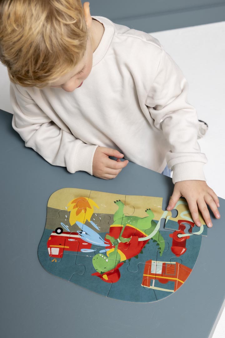 Don’t worry, Mr. Dino’s arrived! Our favourite firefighter is tackling a blaze and he needs your help. This vibrantly-coloured puzzle has 12 large pieces that are perfect for tiny hands, with a fun and exciting illustration to start a conversation or story. Watch the picture form before your eyes while your little one develops their motor and problem-solving skills.