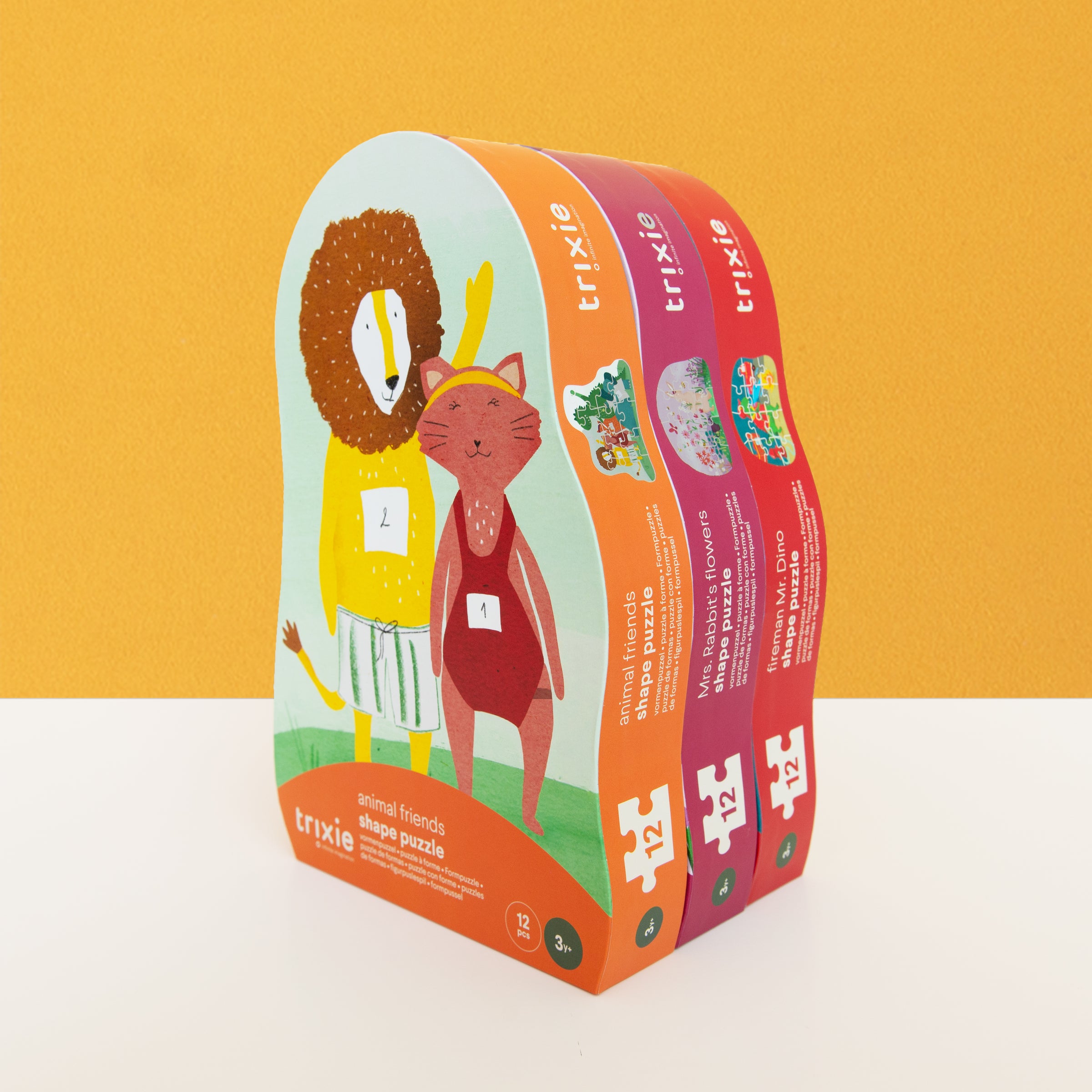 Mrs. Rabbit’s picking flowers today – can you help? This beautiful, cheerful puzzle has 12 large pieces, perfect for tiny hands, along with bright colours and a whimsical illustration to spark your little one’s imagination. While your little one creates a picture, they’ll also be fine-tuning their motor and problem-solving skills.