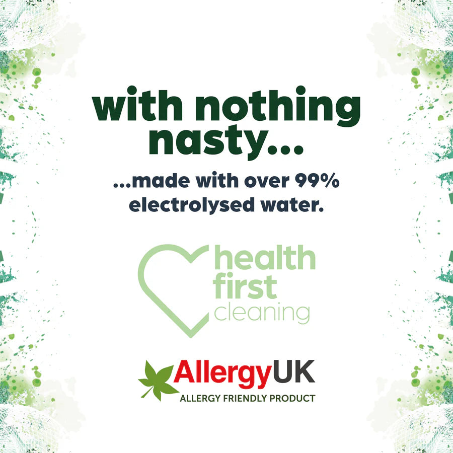 KINDER CLEANING: Award-winning and Allergy UK certified! No harmful chemicals or warning symbols, because we have created the world’s kindest cleaning products. Cruelty-free, because we never test on animals, vegan, pet and family-friendly. It's non-irritant, so no need for rubber gloves.