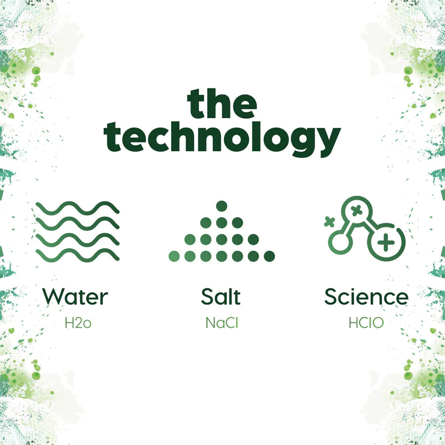 100% BIODEGRADABLE: An environmentally friendly product. A clear liquid cleaner and degreaser, powered by water, salt, and science (electrolysed water), its mineral-based formula is non-toxic and free from alcohol, parabens, dyes, and other harmful chemicals.
