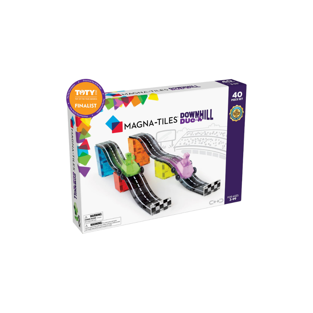 Magna-Tiles Downhill Duo 40-piece Set is a new set that puts your kids in the driver's seat! Little ones can turn their MAGNA-TILES® build into an exciting downhill adventure, in just a few clicks.   Looking for a new way to inspire their imagination, build their motor skills, and support their STEAM learning?  Buckle up and imagine the possibilities with new Ramps, Roads, Dashers and Figures! Ready, set, go!