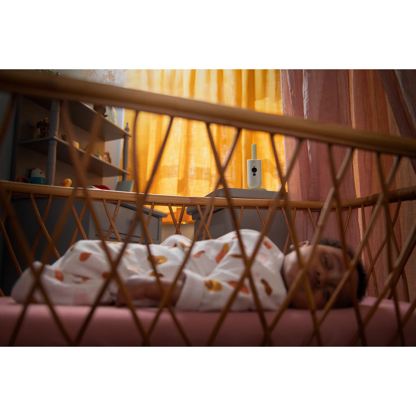 With high and low temperature alerts the integrated room thermometer helps you keep your little one snug as a bug. Just the right amount of cozy for a perfect rest.