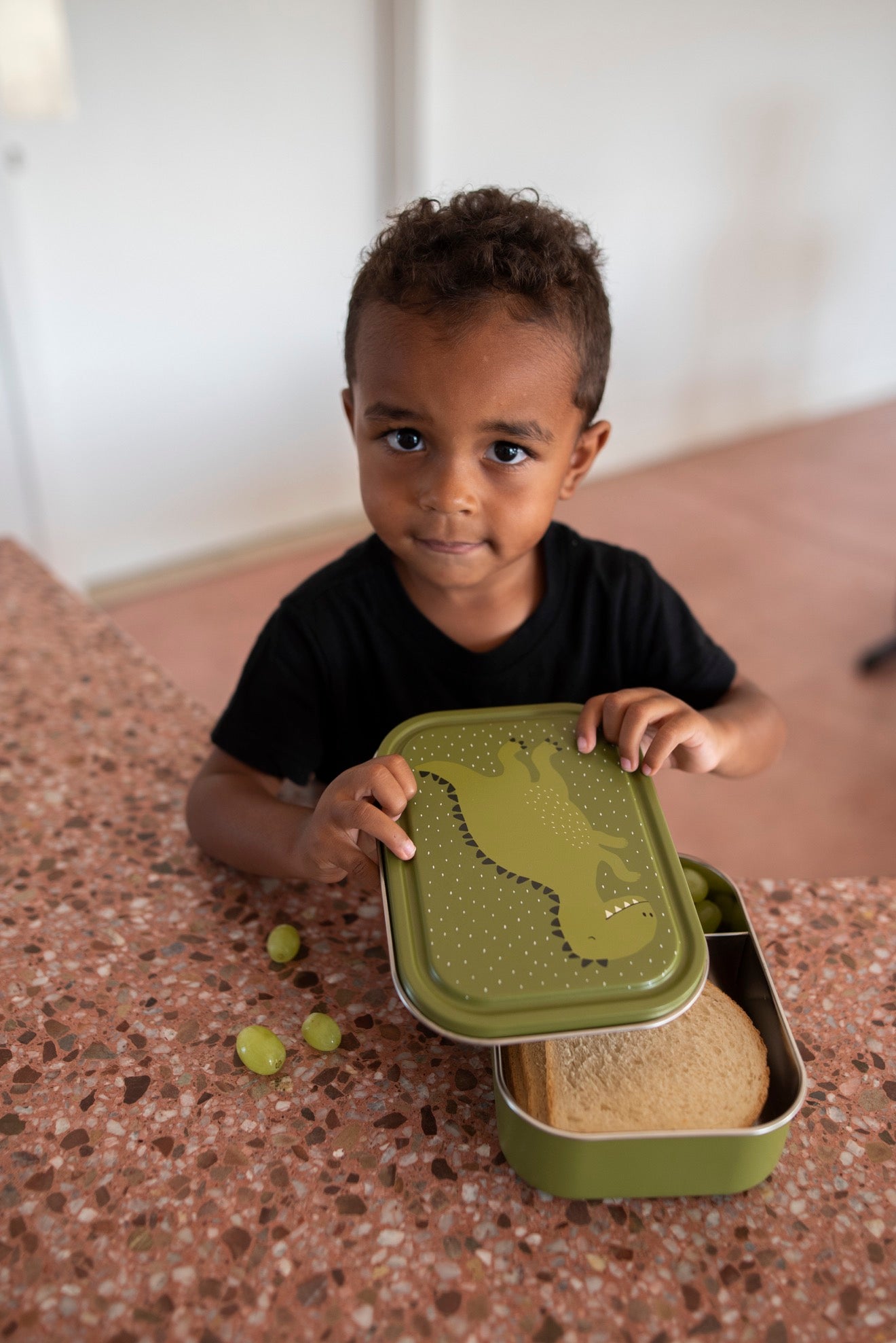 This durable lunch box nicely matches our range of backpacks and bottles. It comes in the same range of beautiful colours and features our fun animal friends on the lid.