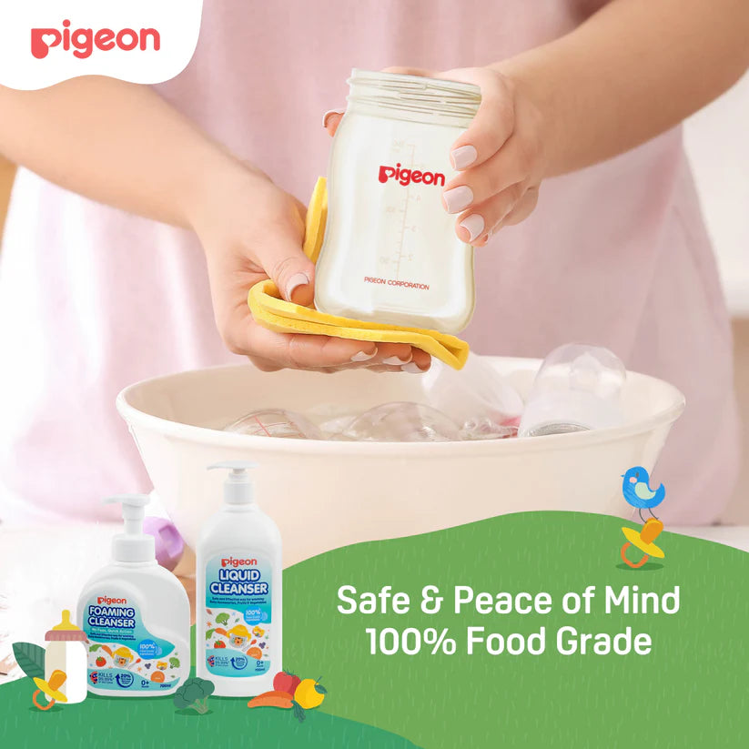 New & Improved Eco-friendly Formula. Made with 100% food-grade ingredients, Pigeon Liquid Cleanser provides a safe and effective way to clean baby bottles, accessories, as well as fruits and vegetables.