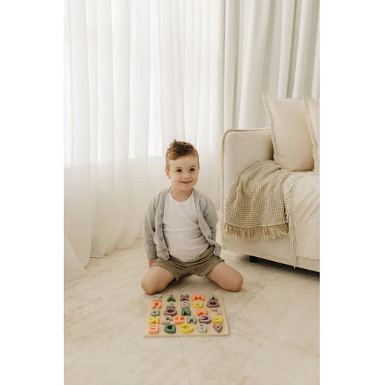 Introduce your child to the joy of learning with the Bubble Wooden Alphabet Puzzle. Crafted from high-quality, sustainably sourced wood, this engaging puzzle features 26 chunky, easy-to-hold letters that fit snugly into their corresponding slots. The vibrant colours and smooth finishes are designed to captivate young minds, making the journey through the ABCs both fun and educational