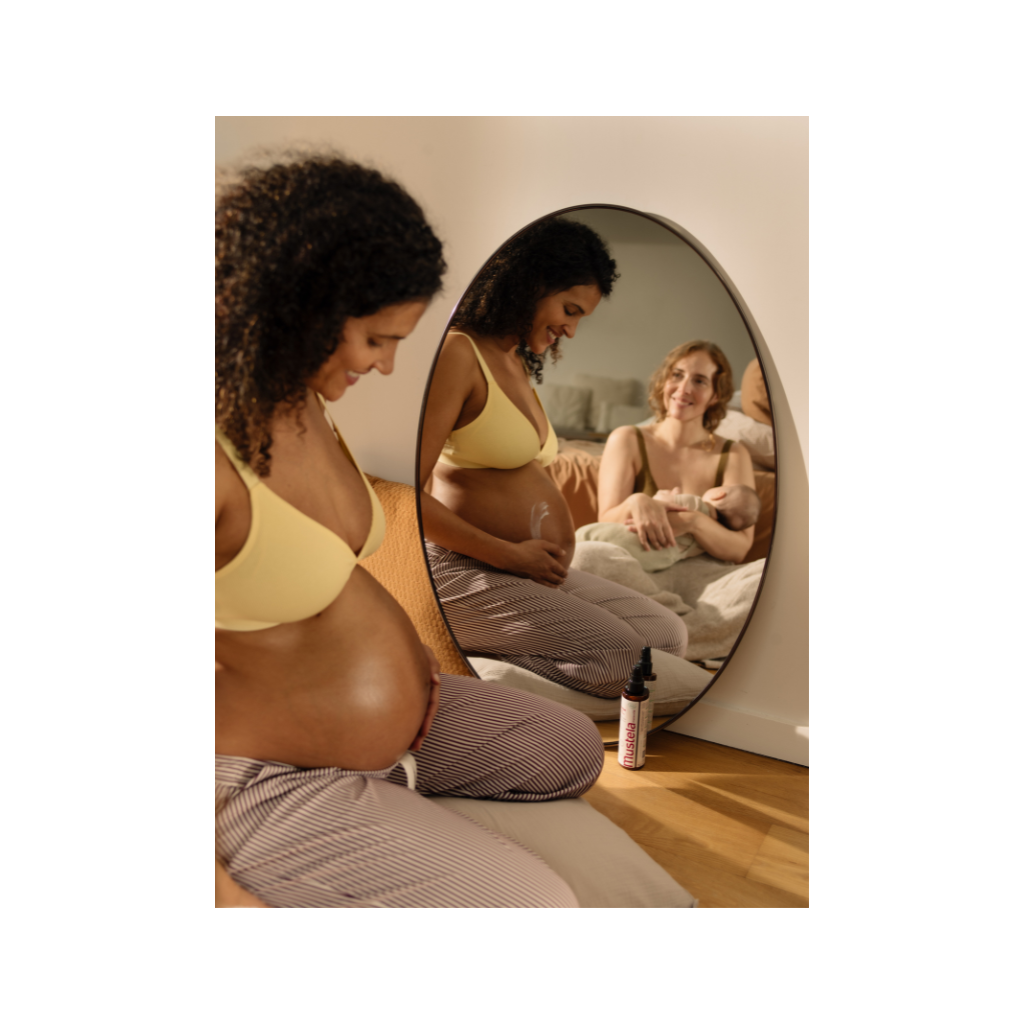 It prevents stretch marks appearance, helps firming the pregnant or postpartum woman's skin while reducing itchings at the same time.