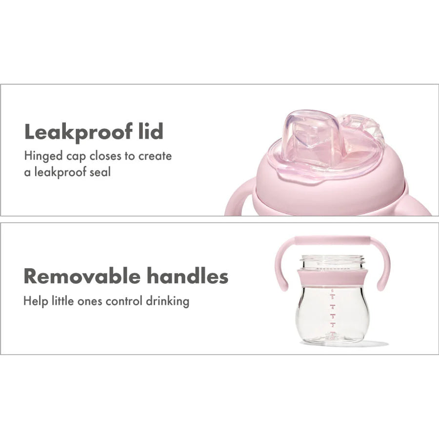 Smarter (and tougher) than the average sippy cup, the 6 oz. OXO Tot Transitions Soft Spout Sippy Cup has a silicone spout that conforms to baby’s mouth for a comfortable sip and less mess. Plus, the hinged cap closes to create a leakproof seal and protect the spout when not in use. The removable handles provide a comfortable grip for your little one, and the cap and spout are removable for easy, thorough cleaning. Dishwasher safe.