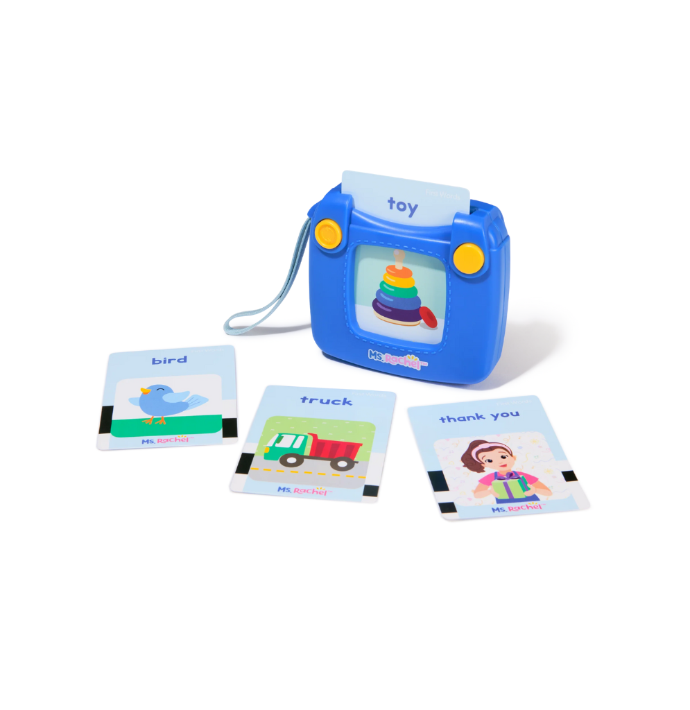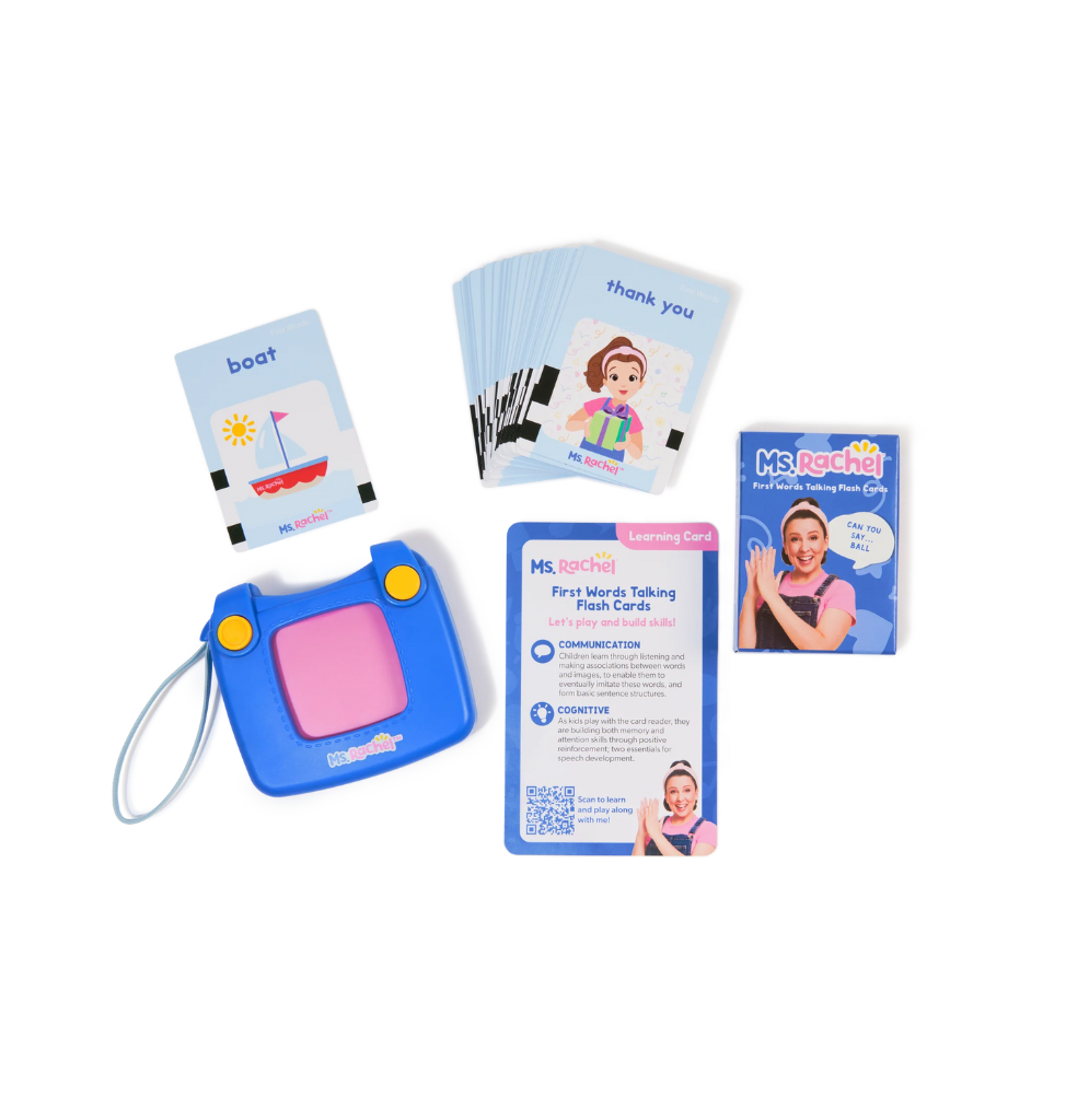 Learn first words with Ms. Rachel with these interactive talking flash cards! Insert cards into the reader to hear Ms. Rachel's voice pronounce words and give playful prompts.