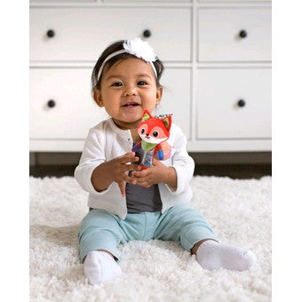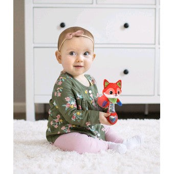 - Eye-catching colors and vibrant patterns on this woodland creature fox rattle are a visual treat for your baby's eyes