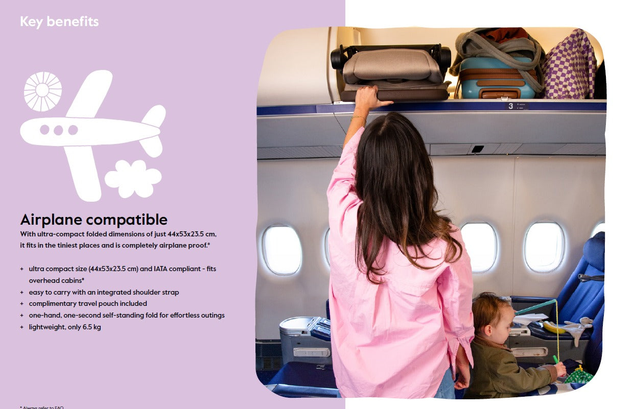 ready to newborn approved in a snap. The Joolz Aer2 is also suitable from birth when set in fully reclined position (0+months).• Airplane compatible – with ultra-compact folded dimensions of just 44 x 53 x 23.5 cm, it fits in the tiniest places and is