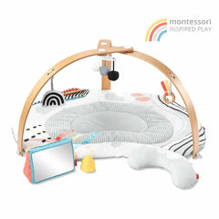 Bring out your baby's innate creativity and curiosity with the Skip Hop Discoverosity Play Gym! Made with sustainably-sourced wooden arches and a plush sensory playmat, this play gym was designed with the help of Montessori education experts to bring your child a perfect balance of tranquility and sensory stimulation. With five developmental toys based on nature, including contrasting patterns, crinkle sounds, and a baby mirror, these toys encourage self-directed exploration and activity. Furthermore, six parent cards serve as a helpful guide to lead you and your baby towards achieving important developmental milestones together. Help your child learn, grow, and explore with the Skip Hop Discoverosity Play Gym today!