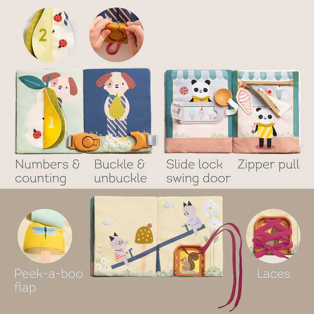 A unique and engaging book designed for toddlers aged 18 months and up. Packed with 15 engaging activities like zippers, buckles, laces, and peek-a-boo, this book enhances motor skill development and introduces essential "big kid" abilities such as dressing and buckling up. An empowering learning tool to ignite babies’ imagination.